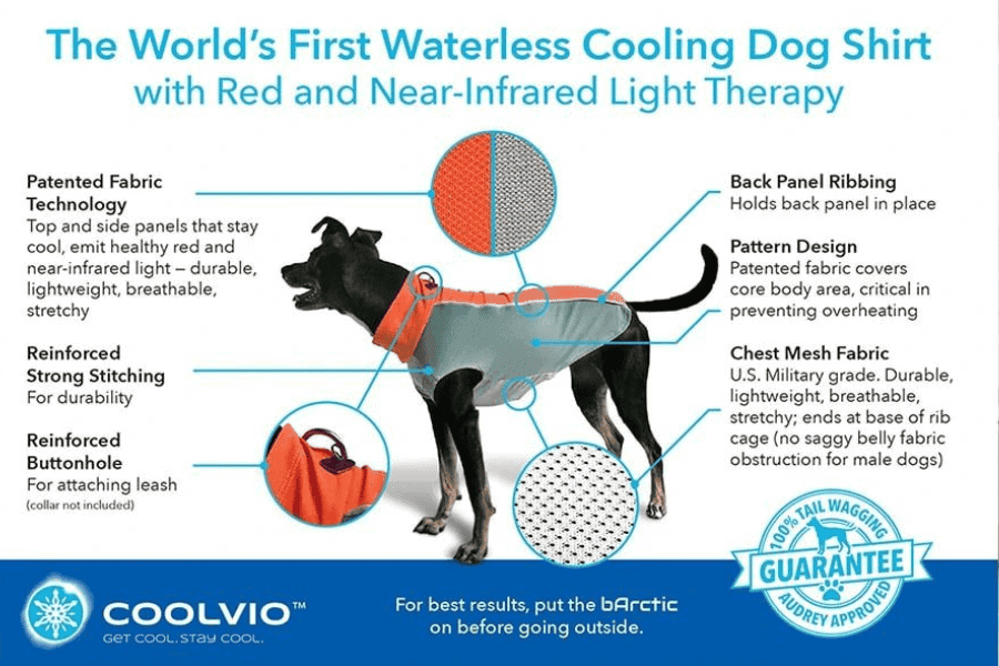 Working with a team of light physicists from UNC-Charlotte and Queens College, we developed a newly-patented fabric technology that does not heat up in the sun like other cooling dog shirts do – but rather transforms sunlight into cooling red and near-infrared energy. This Coolvio fabric technology is the most innovative technology to hit the pet industry this year. We raised 180% of our funding goal on Kickstarter in just 30 days and have since received dozens of rave reviews from fans who see their dogs maximizing playtime outside and the tail-wagging happiness when they’re wearing their bArctic cooling dog shirt.